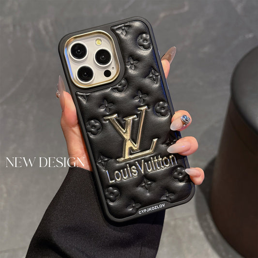 Finest Electroplated Classic Monogram Embossed Leather Apple iPhone Case